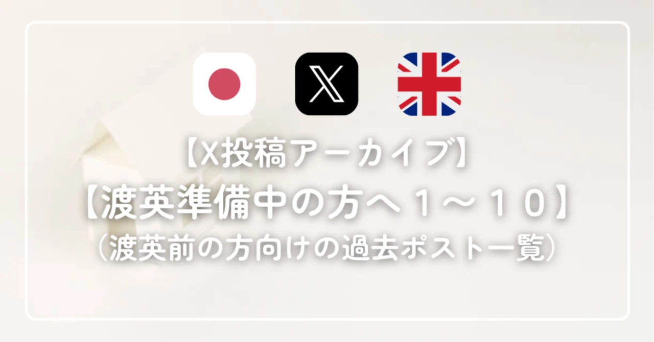 この記事では、Xで発信していた「渡英準備中の方へ」シリーズの投稿をまとめてご紹介します。